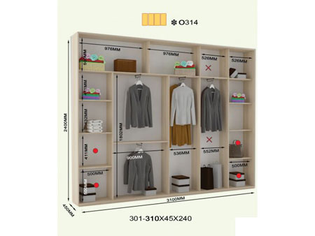 45.00см x 310.00см x 240.00см Характеристики шкафа Количество дверей4 двери Материал корпусаДСП 16мм, кромка ПВХ 0,5 и 2мм Оснащение12 полок, четыре штанги для тремплей, четыре двери (ДСП, зеркало) Форма шкафалинейный Четырехдверный шкаф-купе ОН-314 240.В комплектацию шкафа входит: 12 полок, четыре отделения для тремпелей и четыре двери с профилем Элит в цвете серебро. Дополнительно можно заказать блок В35 и В50. Двери шкафа могут быть выполнены из ДСП, зеркальные, комбинированные или же с горизонтальными делениями. Размеры шкафа: глубина/ширина/высота - 45/301-310/240. Возможно выполнение шкафов высотой 250см за дополнительную плату. Материалы, из которых изготовлен шкаф-купе ОН-314 240: Корпус: ДСП 16мм; Фасады: зеркальные и панельные; Кромка: ПВХ 0.5 и 2мм; Зеркало: 4 мм; Штанга: микролифт металлический. Профиль: Элит или Квадратный. Цвет: серебро, золото светлое, бронза светлая, венге глянец. Раздвижная система: алюминиевая.