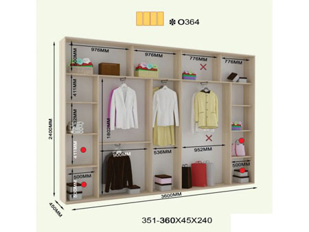 45.00см x 360.00см x 240.00см Характеристики шкафа Количество дверей4 двери Материал корпусаДСП 16мм, кромка ПВХ 0,5 и 2мм Оснащение12 полок, четыре штанги для тремплей, четыре двери (ДСП, зеркало) Форма шкафалинейный Четырехдверный шкаф-купе ОН-364 240.В комплектацию шкафа входит: 12 полок, четыре отделения для тремпелей и четыре двери с профилем Элит в цвете серебро. Дополнительно можно заказать блок В35 и В50. Двери шкафа могут быть выполнены из ДСП, зеркальные, комбинированные или же с горизонтальными делениями. Размеры шкафа: глубина/ширина/высота - 45/351-360/240. Возможно выполнение шкафов высотой 250см за дополнительную плату. Материалы, из которых изготовлен шкаф-купе ОН-364 240: Корпус: ДСП 16мм; Фасады: зеркальные и панельные; Кромка: ПВХ 0.5 и 2мм; Зеркало: 4 мм; Штанга: микролифт металлический. Профиль: Элит или Квадратный. Цвет: серебро, золото светлое, бронза светлая, венге глянец. Раздвижная система: алюминиевая.