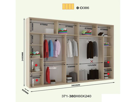 60.00см x 380.00см x 240.00см Характеристики шкафа Количество дверей4 двери Материал корпусаДСП 16мм, кромка ПВХ 0,5 и 2мм Оснащение12 полок, четыре штанги для тремплей, четыре двери (ДСП, зеркало) Форма шкафалинейный Четырехдверный шкаф-купе ОН-386 240.В комплектацию шкафа входит: 12 полок, четыре отделения для тремпелей и четыре двери с профилем Элит в цвете серебро. Дополнительно можно заказать блок В35 и В50. Двери шкафа могут быть выполнены из ДСП, зеркальные, комбинированные или же с горизонтальными делениями. Размеры шкафа: глубина/ширина/высота - 60/371-380/240. Возможно выполнение шкафов высотой 250см за дополнительную плату. Материалы, из которых изготовлен шкаф-купе ОН-386 240: Корпус: ДСП 16мм; Фасады: зеркальные и панельные; Кромка: ПВХ 0.5 и 2мм; Зеркало: 4 мм; Штанга: микролифт металлический. Профиль: Элит или Квадратный. Цвет: серебро, золото светлое, бронза светлая, венге глянец. Раздвижная система: алюминиевая.