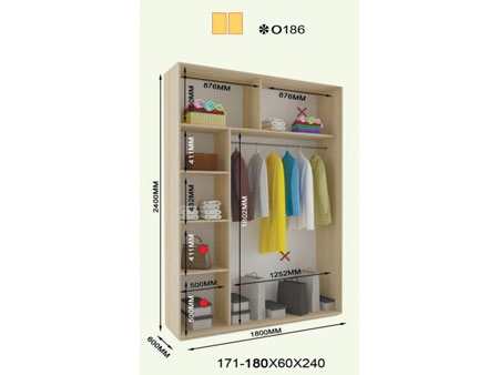 60.00см x 180.00см x 240.00см Вес0.00кг Характеристики шкафа Количество дверей2 двериМатериал корпусаДСП 16мм, кромка ПВХ 0,5 и 2ммОснащение6 полок, штанга для тремпелей, две двери (ДСП, зеркало)Форма шкафалинейный Двухдверный шкаф-купе О-186 240. В комплектацию шкафа входит: 6 полок, отделение для тремпелей и две двери с профилем Элит в цвете серебро. Дополнительно можно заказать блок В35 и В50. Двери шкафа могут быть выполнены из ДСП, зеркальные, комбинированные.Размеры шкафа: глубина/ширина/высота - 60/171-180/240. Возможно выполнение шкафов высотой 250см за дополнительную плату. Материалы, из которых изготовлен шкаф-купе О-186 240: Корпус: ДСП 16мм; Фасады: зеркальные и панельные; Кромка: ПВХ 0.5 и 2мм; Зеркало: 4 мм; Штанга: микролифт металлический. Профиль: Элит или Квадратный. Цвет: серебро, золото светлое, бронза светлая, венге глянец. Раздвижная система: алюминиевая.