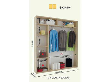 200.00см x 45.00см x 220.00см Характеристики шкафа Количество дверей2 двери Материал корпусаДСП 16мм, кромка ПВХ 0,5 и 2мм Оснащение6 полок, три штанги для тремплей, две двери (ДСП или зеркало) Форма шкафалинейный Двухдверный шкаф-купе ОН 204 220. Состоит из шести полок, трех штанг для тремпелей и двух дверей с профилем Элит в цвете серебро. Двери шкафа могут быть выполнены из ДСП, зеркальные, комбинированные или же с вертикальными делениями. Дополнительно можно заказать блок В35 и В50. Размеры шкафа: глубина/ширина/высота - 45/191-200/220. Цена указана за шкаф стандартного размера шириной 200см. Шкаф с нестандартной шириной от 191см до 199 см оплачивается дополнительно. Также возможно изготовление шкафа высотой 250 см.Материалы, из которых изготовлен шкаф-купе ОН 204 220: Корпус: ДСП 16мм; Фасады: зеркальные и панельные; Кромка: ПВХ 0.5 и 2мм; Зеркало: 4 мм; Штанга: микролифт металлический. Профиль: Элит или Квадратный. Цвет: серебро, золото светлое, бронза светлая, венге глянец. Раздвижная система: алюминиевая.
