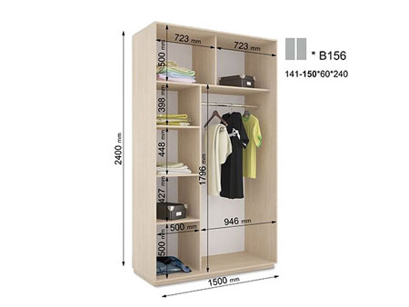 60.00см x 150.00см x 240.00см Характеристики шкафа Количество дверей2 двери Материал корпусаДСП 18мм, кромка ПВХ 0,5 и 2мм Оснащение6 полок, две двери (ДСП или зеркало) Форма шкафалинейный 16px;">Ационная цена указана на двухдверный шкаф-купе 156.Данная модель со стандартной шириной, с зеркальными дверями, профилем серебро в цветах: венге, дуб сонома, орех лесной, дуб молочный, белый поддерживаются на складе.<strong style="font-size: 12px;">Двухдверный шкаф-купе В156 - это модель, которая украсит Ваш интерьер и отлично разместится в малогабаритном помещении.В комплектацию шкафа входит: 6 полок, отделение для тремпелей и две двери с профилем Элит в цвете серебро. Дополнительно можно заказать блок В35 и В50. Двери шкафа могут быть выполнены из ДСП, зеркальные, комбинированные или же с вертикальными делениями. Размеры шкафа: глубина/ширина/высота - 60/141-150/240. Цена указана за шкаф стандартного размера шириной 150см. Шкаф с нестандартной шириной от 141см до 149см оплачивается дополнительно. Также возможно изготовление шкафа высотой 250см. Материалы, из которых изготовлен шкаф-купе В156: Корпус: ДСП 18мм; Фасады: зеркальные и панельные; Кромка: ПВХ 0.5 и 2мм; Зеркало: 4 мм; Штанга: микролифт металлический. Профиль: Элит или Квадратный. Цвет: серебро, золото светлое, бронза светлая, венге глянец. Раздвижная система: алюминиевая. Стандартные цвета в складской программе: венге магия; яблоня Локарно; ольха горная; дуб молочный; белый; орех лесной. Срок изготовления шкафов в стандартной цветовой гамме составляет 3-4 дня. Стандартные цвета, не входящие в складскую программу: орех темный. Срок изготовления шкафов в этих цветах составляет 10 дней. Нестандартные цвета: дуб арканзас темный. Шкафы в нестандартных цветах изготавливаются за дополнительную плату в течении 10 дней. Данные цвета не используются для фасадов.