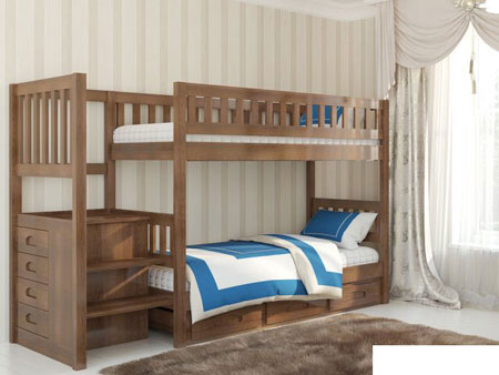 260.00см x 98.00см x 170.00см Характеристики мебели Материал массив натурального дерева (ольха) Двухъярусная кровать Владимир 90х200 впечатляет стильным дизайном и великолепной функциональностью. Она не оставит равнодушными ни маленьких эстетов, ни их родителей. Материалом изготовления является массив натурального дерева ольхи - идеальное сочетание экологической чистоты и эстетического совершенства. За дополнительную плату это может быть массив ясеня или дуба. Кровать сконструирована с учетом всех требований эргономики и техники безопасности. Модель оснащена удобными, широкими ступенями, сводящими вероятность падения к абсолютному минимуму. Кровать укомплектована выдвижными ящиками, расположенными под ступенями лестницы, а также вместительными ящиками для белья и игрушек в нижней части кровати. Для безопасности ребенка, верхний ярус оборудован защитными бортиками. Вашему вниманию представлен следующий выбор цветов: орех;светлый орех;темный орех;яблоня;груша;ольха;бук;венге. За дополнительную плату возможно изготовление кровати нестандартного размера, а также предоставляется возможность выбрать нестандартный цвет из коллекции палитры RAL. Изделие покрыто безопасным гипоаллергенным лаком. Сочетая кровать с качественным ортопедическим матрасом, сон Ваших детей будет крепким и здоровым. Размеры спальных мест кровати Владимир Длина, см Ширина, см 200 90 Габариты кровати: 98х260см. Высота: 170см.