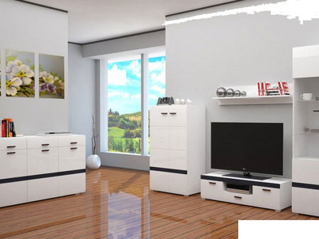 0.00см x 0.00см x 0.00см Вес0.00кг Характеристики мебели МатериалДСП, МДФ Гостиная Hollywood. Все элементы гарнитура изготовлены из ламинированной плиты ДСП толщиной 16мм, плиты МДФ 19мм, обклеенная глянцевой пленкой ПВХ в сочетании с матовой. Все изделия имеют пластиковые ручки. Цвет: белый/белый глянец с черными вставками. В гарнитур входит: Комод Hollywood E: длина - 135 см; глубина - 39 см; высота - 88 см. Комод Hollywood A: длина - 80 см; глубина - 39 см; высота - 133 см. Тумба ТВ Hollywood H: длина - 150 см; глубина - 46 см; высота - 41 см. Полка навесная Hollywood D: длина - 100 см; глубина - 19 см; высота - 20 см. Витрина Hollywood C: длина - 80 см; глубина - 39 см; высота - 194 см.