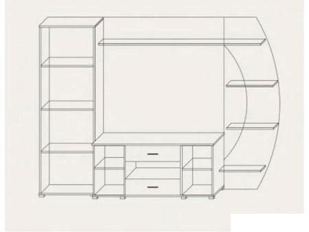205.00см x 49.00см x 186.00см Характеристики мебели МатериалДСП Гостиная Оливия новая.Корпус и фасады гостиной изготовлены из ДСП.Конструкция может быть собрана как на левую, так и на правую сторону.