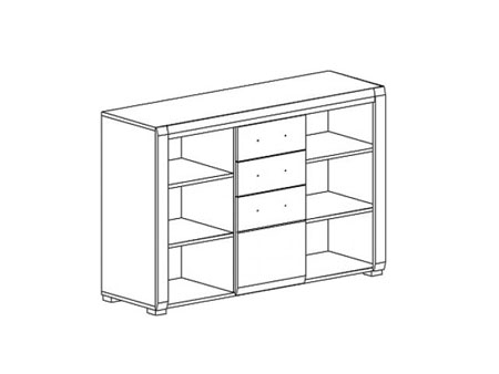 131.50см x 41.00см x 87.00см Характеристики мебели Материал ДСП, МДФ Комод Rain F. Наполнение: выдвижные ящики, шкафчики с полочками. Материал корпуса: ламинированная плита 16 мм. Материал фасада: ламинированная плита МДФ 19 мм. Кромка 0,5 мм. Цвет: дуб каньон/белый глянец.