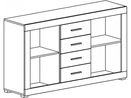 155.00см x 40.50см x 54.00см Характеристики мебели Материал ламинированная плита МДФ - 19 мм, ДСП - 16 мм Комод Silver L. Наполнение: два шкафчика с полками и четыре выдвижных ящика. Корпус: ламинированная плита ДСП толщиной 16 мм. Кромка: 0,45 мм. Фасад: ламинированная плита МДФ - 19 мм. На дверях установлен механизм плавного закрывания. Цвет корпуса: белый. Цвет фасада: белый глянец/графит матовый.