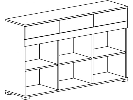 150.00см x 37.00см x 88.00см Характеристики мебели Материал ДСП Комод Vizion E. Наполнение: три выдвижных ящика, три шкафчика с полками. Материал: ламинированная плита ДСП, толщиной 16 мм. Кромка - 0,45 мм. На дверях установлен механизм плавного закрывания. Ручки - металлические.