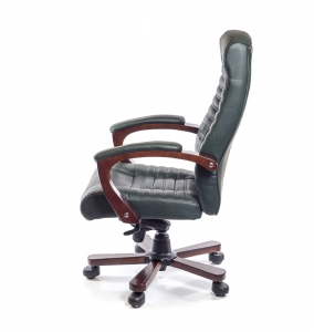Подлокотники. Престижность данного кресла подчеркивают форменные, широкие подлокотники. Их Г-образный изгиб и размер подобраны так, чтобы рукам было комфортно облокачиваться на них. Натуральное тонированное дерево создает ощущение домашнего уюта и теплоты. Мягкие накладки защищают руки от контакта с твердой поверхностью и дарят дополнительный комфорт.