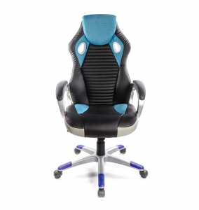 Обивка. Современный дизайн кресла дополнен удачным сочетанием обивочных материалов - ткань ярких цветов гармонично дополняет качественная экокожа черного цвета. Тканевые вставки помимо декоративной роли имеют и практичную функцию - они расположены в местах максимального соприкосновения с телом для еще более комфортной посадки.