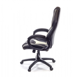Дизайн. Безусловно стильное кресло притягивает взгляды благодаря уникальному дизайну, выполненному в двух цветовых гаммах. Сочетание черного и бежевого цветов обивки делает его в меру ярким, но не кричащим. По периметру силуэта – красивый светлый кантик. Модель будет уместной и в комнате младшего поколения, и в офисе, и в домашнем рабочем уголке.