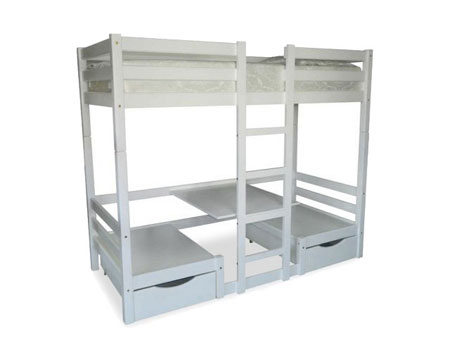 200.00см x 90.00см x 178.00см Вес0.00кг Характеристики мебели Материалмассив хвойных пород деревьев Кровать-чердак и трансформер Л-304 - это двухъярусная модель со спальными местами 90х200 см и рабочим столом. Модель изготовлена из прочного материала: твердолиственных хвойных пород деревьев отличного качества. Оснащена защитными бортиками, которые обеспечат безопасность Вашим детям, комплектуется ламелевым основанием под матрас. Дополнительно можно заказать выездной ящик.