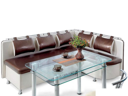 Диван функциональный, оснащен вместительными ящиками для хранения кухонных принадлежностей, овощей, полотенец. Собственно, каждая хозяйка сама сможет определить, что хранить в этих коробах.