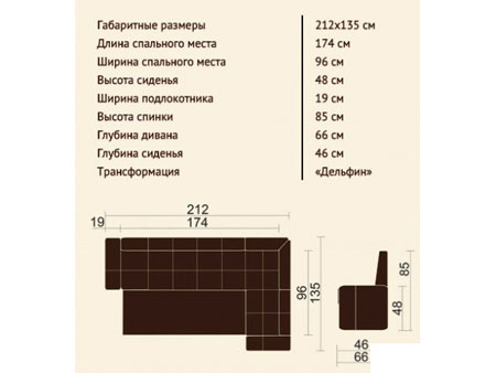 Функциональная модель, оснащенная механизмом трансформации - дельфин, благодаря которому Вы обретете спальное место размером 96х174см. Имеются вместительные ящики для хранения посуды или постельных принадлежностей.