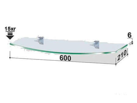 210.00мм x 600.00мм x 6.00мм Характеристики мебели МатериалСтекло Радиусная стеклянная полка Gamma PL7 RC 210х600х6 с прозрачным стеклом.Изготовлена из стекла толщиной 6 мм.Нагрузка на изделие 15 кг.Полка укомплектована держателем стекла ДСн30 - 2 шт.Цвет держателя - metallik.Габариты изделия (Г/Ш/В) - 210/600/6.