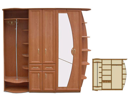 50.00см x 210.00см x 223.00см Характеристики мебели Материал ДСП Вы можете не сомневаться, что прихожая Изабель сумеет произвести впечатление на всех, входящих в Ваш дом. Внутреннее наполнение изделия продумано в соответствии с требованиями эргономики, поэтому гарантирует удобство и комфорт. Данная модель включает в себя: двухдверный шкаф с полками и выдвижными ящиками (60см);двухдверный шкаф, оснащенный штангой для плечиков (60см);отделение, совмещающее открытую вешалку и вертикальную штангу с крючками (60см);множество открытых полочек, которые можно использовать для небольших предметов и декоративных украшений (30см). По Вашему желанию прихожая может быть изготовлена в любом цвете из предложенной палитры. На нестандартный цвет из палитры Swisspan действует надбавка. В данной модели используется серийная фурнитура. Материал: ЛДСП