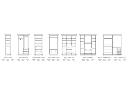 Двухдверный гардеробный шкаф со штангой для верхней одежды и выдвижным ящиком. Резные цоколи и утонченная фурнитура в цвете латунь. Из элементов модульной системы можно укомплектовать прихожую, спальню, гостиную и кабинет.