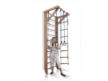 Спортивный уголок изготовлен из экологически чистого материала – древесины бука. Готовые детали тщательно отшлифованы и покрыты сертифицированным лаком. Спортивный уголок выдерживает нагрузки – до 130 кг, и до 80 кг на навесные элементы.