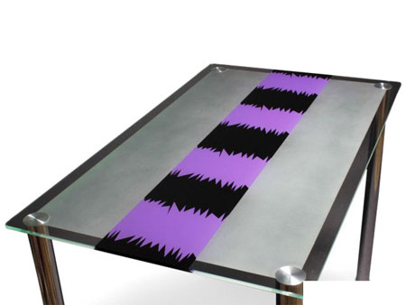 Стол имеет форму прямоугольника. Особенностью этого столика является рисунок, который выглядит как будто на матовую поверхность набросили цветную накидку. Поэтому и название у стола соответствующее.