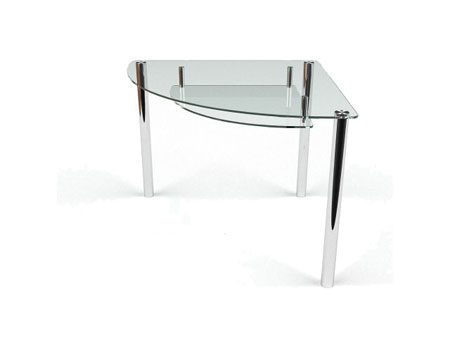 Столик угловой, столешница прозрачная, изготовлена из закаленного стекла толщиной 8мм. Столик функциональный, оснащен дополнительной полкой из прозрачного стекла толщиной 6мм. На нее можно поставить мелкие вещицы необходимые на кухне. Устойчивость стола обеспечивает металлическая хромированная труба диаметром 50мм. Сочетание стекла и металла, делают стол надежным и практичным.