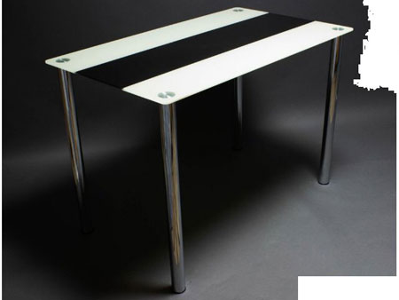 Стол изготовлен из качественных материалов. Столешница из закаленного стекла толщиной 8мм, способного выдерживать нагрузку до 500кг. Ножки стола сделаны из высокопрочного металла с нанесением хрома, что делают стол еще более современным и стилным.