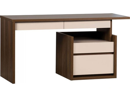 Столешница письменного стола сделана из толстой плиты (28мм). Под широкой крышкой стола имеется два вместительных ящика для хранения канцелярии или документов. Ящики изготовлены из плиты с высоким блеском. Оснащены современными направляющими Quadro, что является гарантией высокого качества. Открываются с помощью потягивания рукой фасадов внизу ящика.