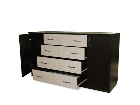 На фасад тумбы крепится ручка Gamet, с присадкой под одно отверстие.Задняя стенка состоит из двух частей: высота каждой - 15 cм, по середине зазор для вентиляции холодильника.