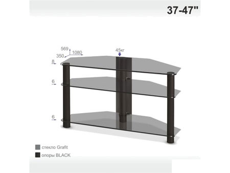 35.00см x 108.00см x 56.90см Характеристики мебели Материалстекло, металл Тумба из стекла под телевизор Евро New BlХарактеристики:Максимальная диагональ телевизора: 47 (дюймов)Максимально допустимая нагрузка: 45 кгЦвет: графит.Размер тумбы:Ширина: 108 смГлубина: 35 смВысота: 56.9 смМатериал:Полки - калёное стекло 8/6/6 мм.Ножки - металл.