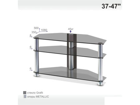 35.00см x 108.00см x 56.90см Характеристики мебели Материалстекло, металл Тумба из стекла под телевизор Евро New MetХарактеристики:Максимальная диагональ телевизора: 47 (дюймов)Максимально допустимая нагрузка: 45 кгЦвет: графит.Размер тумбы:Ширина: 108 смГлубина: 35 смВысота: 56.9 смМатериал:Полки - калёное стекло 8/6/6 мм.Ножки - металл.