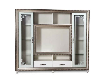 50.60см x 230.20см x 196.80см Вес0.00кг Характеристики мебели Материалламинированное ДСП, декоративный полиуретановый профиль Гостиная комната во все времена была лицом хозяина. Но в прошлом, практически в каждой квартире стояли стенки - крупногабаритная мебель, которая ставилась один раз и на много лет. В настоящее время производители могут порадовать нас своими изделиями, которые занимают мало места, но и вмещают в себя множество предметов. Таким представителем мебели для гостиной комнаты является ТВ-витрина Элизабет белая. Она станет эпицентром внимания, добавит элегантности, изящества интерьера в гостиной комнате. Выполнена в классическом стиле, из эклогически чистых материалов. Имеет отделение для размещения телевизора, а также множество полок за красивыми узорчастыми стеклами распашных дверей. Полки есть и открытые, которые находятся как под телевизором, так и над телевизором. Дополнительно, оснащена двумя выдвижными ящиками. Таким образом, Вы сможете найти место для всех вещей в доме: и тех, которые хотели бы спрятать от чужих глаз, и тех, которые хотели бы показать. Материалы:ламинированный ДСП; стекло; декоративый полиуретановый профиль.Размеры:ширина: 230,2 см; глубина: 50,6 см. высота: 196,8 см.