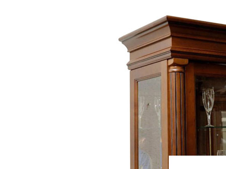 Витрина состоит из пяти стеклянных полок, на которые можно выставить чайные сервизы, бокалы, столовые наборы.